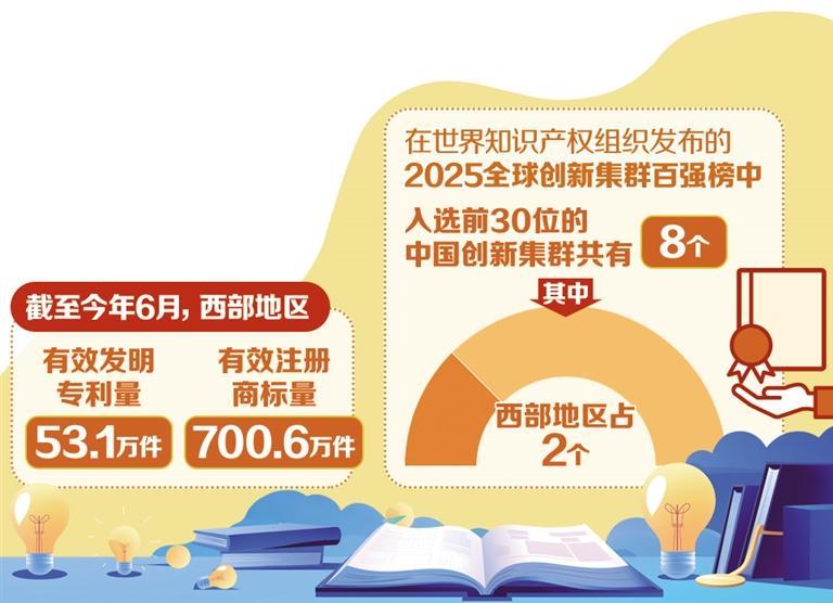 The report "2025 Global Innovation Index (GII) has recently been released by the World Intellectual Property Organization shows that China has been ranked in the world's top ten for the first time and maintains a leading position in the global income economy. On the list of 2025 Top 100 Global Innovation Clusters released by the World Intellectual Property Organization, China has 8 clusters of innovation ranked in the top 30, of which 2 in the western region in June, the number of valid registered商标达到了7.006,000,总体增长了,这表明西方地区的能力不断变化,并成为我国家知识上的知识行业不可或缺的一部分。Estern Power正在改变国家变革区的模式。西部地区的炎热土地通过在整个知识产权链中有系统的崩溃来形成强大的知识产权国家,在重要的支点中逐渐增长,为高质量的经济发展提供了强大的动力。专利的转化正在加速,智力财产转型的“最后一英里”的开放是变革与行业深入整合的关键。西方地区依靠西方城市的强大NA大学和西方城市的科学资源,如西安,成都和重庆,完全促进了从实验室到生产线和商业价值释放的专利技术。李·赫琼(Li Hejun)向西北理工大学转型的案例是其代表。该团队从事高性能摩擦材料和陶瓷热隔热的研究和燃烧材料很长时间。 2024年6月,该项目获得了2023年国家技术发明奖的二等奖。为了允许科学研究人员专注于研究要点,学校将开放转型渠道,寻求政策支持,将投资机构和融资联系起来,提供服务,这是用于转化和应用知识产权的整体过程,并解决了转化科学和技术成就的问题。 2024年7月,学术团队李·赫琼(Li Hejun)以专利为赞赏的新材料技术有限公司(Xi'an Boxin New Material Technology Co,Ltd)。换句话说,该项目在短短2个月内就将科学和技术成就转变为公司实体。该公司成立不到半年后,它成功地获得了3750万元人民币的融资,其市场升值达到了2亿元人民币。不仅是发展该专利的回报率,但以地理指示和商标代表的品牌的影响在西部地区的经济发展中也表现出了巨大的能量。西安市政府副秘书长杨Zuotoo(Yang Zuotoo Xi'an Vision和Visual Company的“ Terracotta Warriors and Horses VR Cinema”项目使用数字方式制作数千年的Terracotta Warriors and Horse“ Live”,并赢得了“全球第二世界知识组织”; “ Tang Niu”和“ Yi Qin”将Tang和Qin Dynasty的要素纳入时尚的文化和创造性文化中,并依靠专利和商标来产生保护网络; “ Tang Tang Dynasty City”和“ Changan的十二个小时”使用商标品牌将Cultu结合起来RAL资源,到MGA分散的历史象征形成集群效应。从对专利的欣赏到加强商标专利,西方地区将创新成就与市场需求结合在一起,实现快速转型,破坏科学,技术和经济的“两个皮肤”问题,注入区域经济发展的新动力,并为西方的国家发展提供西方经验。系统地保护现代创造力。智力保护是刺激变更和维护市场秩序的活力的重要保证。在最近的两年中,西方的文化和旅游市场充满了热情,这导致了文化和创意领域的销售,但是随后在智力保护财产的问题上,人们更加众所周知。以Daxiang Technology(XI'An)Co,Ltd The Dote for“ furry bun”为例IS是具有基于Xi'an Roujiamo的时尚玩具的毛绒玩具,并迅速成为西安(Xi'an)的领先文化产业和创意。但是很快,这个“小明星”发现了一种假违规行为,这严重影响了公司的经济回报和品牌形象。今年3月15日,西安版权局,市场监督管理局以及文化和旅游局共同发布了“尊重和保护时尚玩具的知识上所有权的共同公告”,并执行了特殊的更正措施。 “通过协调编织多个部门的紧密保护网络,实际'毛茸茸的面包'的销售额在半年内增长了50%以上,这有效地保护了首次公开报价的利益。” Yang Zotoao提出。西安城墙管理委员会探索了一条新的数字文化遗产保护途径。他们为“数字小屋”建立了一个全面的管理平台,并基于数字机舱项目,leted 72 data of the Pags of Pags Pag pag pag pag pag pag pag pag pag pag pag pag pag pag pag pag pag pag pag pag pag pag pag pag pag pag pag pag pag pag pag pag pag pag pag pag pag pag pag pag pag pag pag pag pag pag pag Intellectual ownership to develop rich data资产。在文化和旅游业方面,通过 - 深度数据分析(例如Turis Source Areata,年龄结构等),从文化和创意产品到文化遗产,从违反数字保护的情况下,西方地区建立了一种全面的知识保护系统,为传统的文化变革和数字经济发展提供了稳定的保证。该政策导致环境优化一个良好的政策环境是智力权利高质量发展的基础。通过机构创新和服务优化,西部地区创建了一个与变革和企业家精神一致的生态系统。沉唇,可怕ctor of the Shaanxi Provincial Intellectual Property Bureau, introduced that in December 2024, Shaanxi province launched a "Lingxi Plan" to produce a deep mechanism of integration of "GobyeRno, Industry, Academy, Research, and Finance "with four in-one integrations of" Policy Policy + Government Government + Regional Coordination + Market Operation ".自从启动该计划以来,已经为氢能,CNC机床,钛和钛合金,商业航空航天等的主要行业举行了四次离线活动,包括氢能,钛合金和钛合金在内的专利池,包括30种技术,以及30种技术对接和资本对接的技术,并促进了专利量的价值,旨在Converent Convernent Convercent Convernent Converent Converent Convernens Convercent is 1500 nors y Mornor Yuuan。 - 在Shaanxi省级党委员会金融委员会副局长Li Jihui拥有的知识分权上,介绍了地方政府的科学和技术财务50步,使特殊FI知识产权知识产权的土地,并建立了“ Qinzhidai”知识